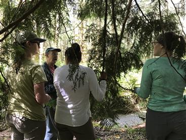 Over the years I had chosen not to look very closely at this twenty-five acre chunk of the Cumberland Creek Conservation Area. To do so would involve an arduous, maybe unpleasant bushwhack. There were easier paths. Last summer though, Skagit Land Trust Conservation Director Michael Kirshenbaum, Russ Dalton, and I laid out a possible trail. The Trust’s Conservation Assistant, Hannah Williams, and her crew of three young women from TNC’s LEAF program worked on a few hot, buggy August afternoons and created that trail. A subsequent work party that included Dick Reister, Rick Machin, Hal Lee, Pete Hasse, Randy Dills, and Trust staff Regina Wandler and Michael Kirshenbaum built upon and extended the work of Hannah and her crew.