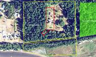 | Figure 1: Corner of Roney Road and Samish Island Road today. Samish Flower farm lies on both sides of the road | Figure 2: Rendition of what corner of Roney Road and Samish Island Rd could look like with cleared lots for sale | Figure 3: Property for sale outlined in yellow. Red outline shows portion of property retained by family. Light green is an existing Trust conservation easement on private property. |