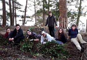 English ivy is an aggressive invasive plant that is still found in many gardens and urban areas. It creeps along the ground and climbs up trees and shrubs. Ivy removal is a common focus of Skagit Land Trust work parties. |