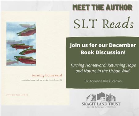 Thank you to those of you that have joined us previously in SLT Reads discussions. We have thoroughly enjoyed our conversations, and love seeing you all – virtually! SLT Reads will be taking a break for the month of November but hope you will join us for our December book club discussion. We will be reading Turning Homeward: Restoring Hope and Nature in the Urban Wild by Adrienne Ross Scanlan. This book not only touches on the elements that make up the Pacific Northwest, but also includes ways to restore our natural environment. In the rainy, cold months, it is important to find hope and remember our connections to nature and our role in restoration. We will have a chance to meet the author during our discussion.