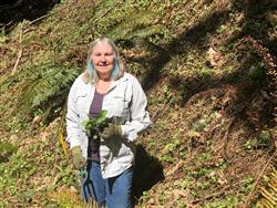 | Today’s Stewardship Challenge is: Yellow Archangel removal! Stacy, our Volunteer & Education Programs Coordinator, is hard at work removing this invasive. Follow her lead and send us a photo of you removing this weed from your yard! Email your photo to americorps.stewardship@skagitlandtrust.org to be entered into a drawing for Skagit Land Trust prizes. For more information about this invasive species and how to remove it, follow the link: https://www.nwcb.wa.gov/weeds/yellow-archangel |  |