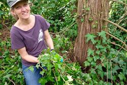 Happy Earth Week! Today’s Stewardship Challenge is: English Ivy removal! Spend some time removing ivy in your yard today and send your photo to americorps.stewardship@skagitlandtrust.org to be entered into a drawing to win Skagit Land Trust merchandise. Kari, our Conservation Project Manager is working hard at removing the ivy in her yard today too. Who else is going to take on the challenge?! For more information about this invasive species and how to remove it, follow the link: https://www.nwcb.wa.gov/weeds/english-ivy |  |