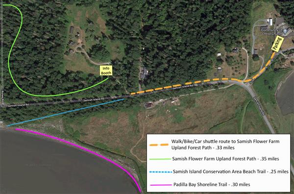 Activities will include walks through the newly completed Samish Flower Farm upland forest footpath, a chance to catch up with Skagit Land Trust staff and board members, and talks on the recently conserved shoreline at the entrance to Samish island. Guests are encouraged to bring a picnic to enjoy on the beach.