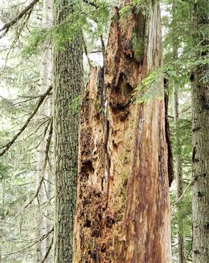 Snags also provide roosting places for bats that crawl into the space between the bark and wood of the tree.