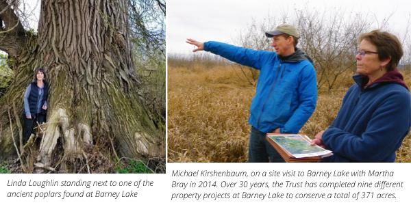 This spring the Barney Lake Conservation Area grew to 371 acres, thanks to a partnership with two families who understand the importance of protecting this rare wildlife sanctuary for all generations. Linda & Beau Loughlin and Cathy & Walter Pfahl have lived at their homes on the north side of Barney Lake since the 1970’s. For a long time they have thought about how to protect the wetland portions of their property that become part of the lake each winter.