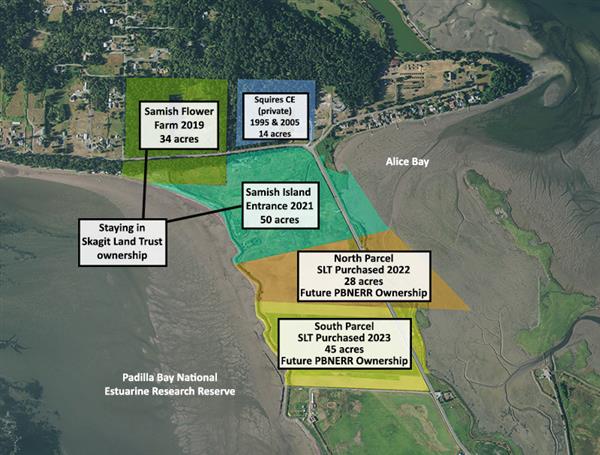 "Our partnership with PBNERRS will expand the scope of the assessment and restoration feasibility study to include the recently protected parcels," says Stewardship Director, Regina Wandler. "The Trust and PBNERR will review the study to determine how to move ahead on a marine shoreline restoration project on Samish Island."