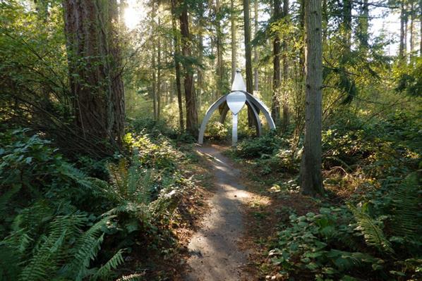 About the Hike: A short gentle trail through a sculpture garden set in a beautiful forest protected by a conservation easement with Whidbey Camano Land Trust. This site is great for all ages, has an interactive app for self-guided tours, and is an excellent intersection of art and nature (including art in situ, built to be in the forest!).