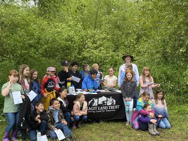 Since April, Skagit Land Trust has taken eight groups of Sedro-Woolley 1st, 2nd, and 3rd graders to our Utopia Conservation Area. Immaculate Conception Regional School 3rd graders also participated in these trips. Children and chaperones alike got to connect with the land and interact with several hands-on learning stations guided by wonderful volunteers.