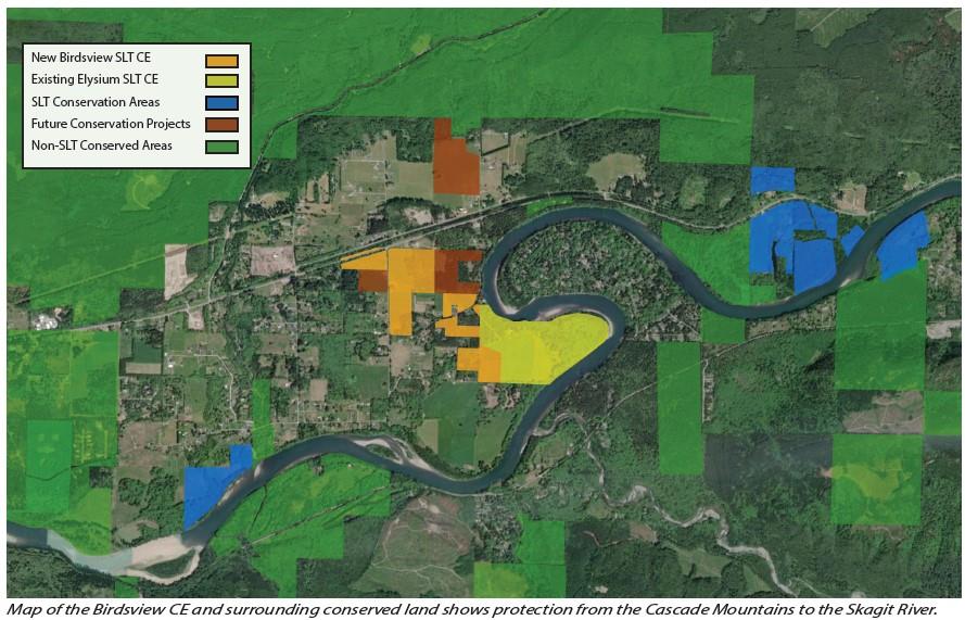 “Elk are a sign that large wildlife find the area hospitable, which can mean that cougars, bears, and bobcats do, too,” explain the owners of the Birdsview Conservation Easement (CE), one of Skagit Land Trust’s (SLT’s) most recently established conservation easements in the Skagit Valley. This CE protects 122-acres of wildlife habitat, mature forest, and working agricultural lands. Combined with an already established, adjacent 123-acre CE, the nearly 250 acres of now-protected land connect the Skagit River to adjacent uplands.