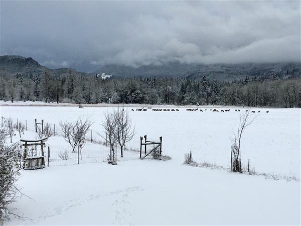 Elk and other fish and wildlife find peaceful refuge at Birdsview throughout the year, from summer (above) to winter (below).