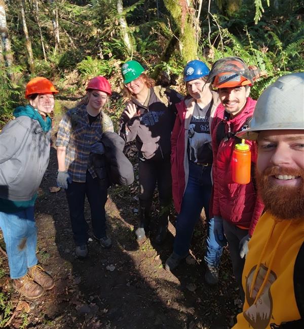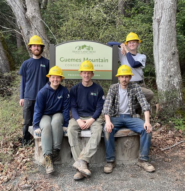 A WCC crew poses after a day of trail maintenance at our Guemes Mountain Conservation Area.