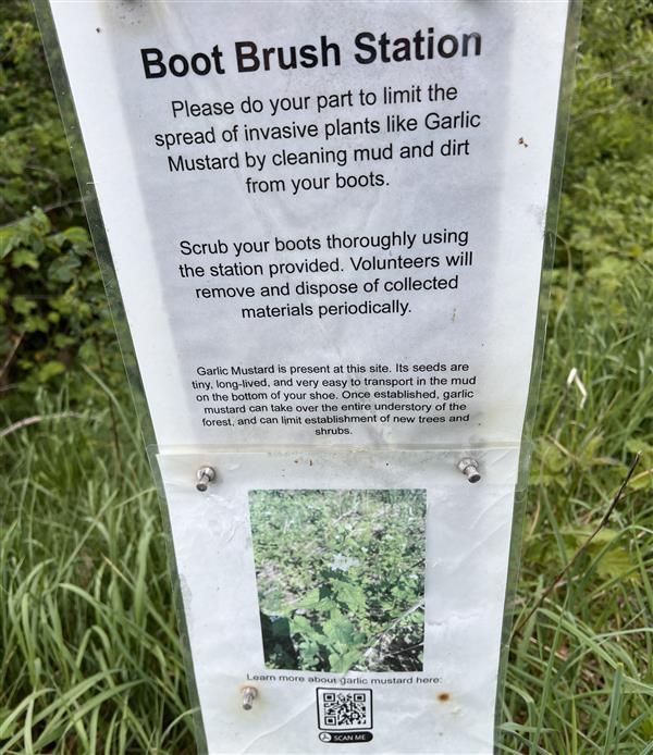 Our Stewardship team returned later with volunteers to manually pull and pack out any remaining plants before they went to seed. We also carefully brushed our boots before leaving the site, and we will continue to monitor trails where seeds might have hitched a ride on boots or paws. Staff and volunteer fingers may reek of garlic for hours afterward, but it’s the smell of hard-earned progress!