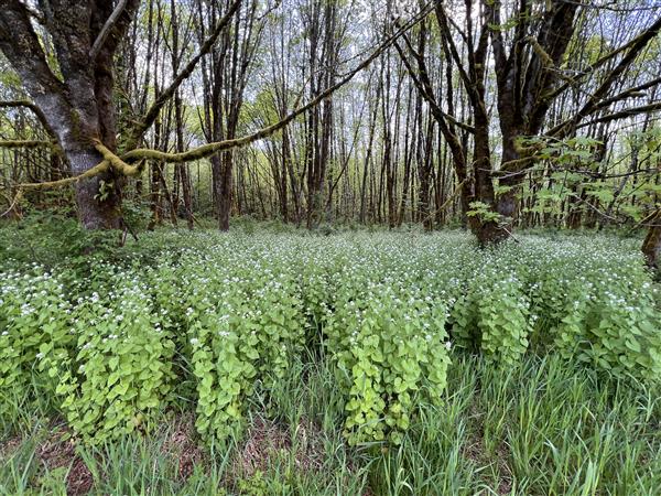 A silent battle is underway in the forested understory of the Trust’s Pressentin Ranch Conservation Area, which lies along the Skagit River near Concrete. A fragrant invader, garlic mustard, threatens the balance of native ecosystems. Ongoing support and strategic effort from SLT’s Stewardship team are needed to keep this aggressive weed from gaining a foothold in our forests.