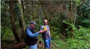 | Jim Owen & Kari Odden on site tour |  | Jim and Mark HItchock discuss the forest health |