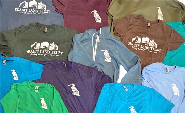 We have Skagit Land Trust hats and beanies, tote bags, water bottles, pint glasses and tumblers! Apparel is available in our
